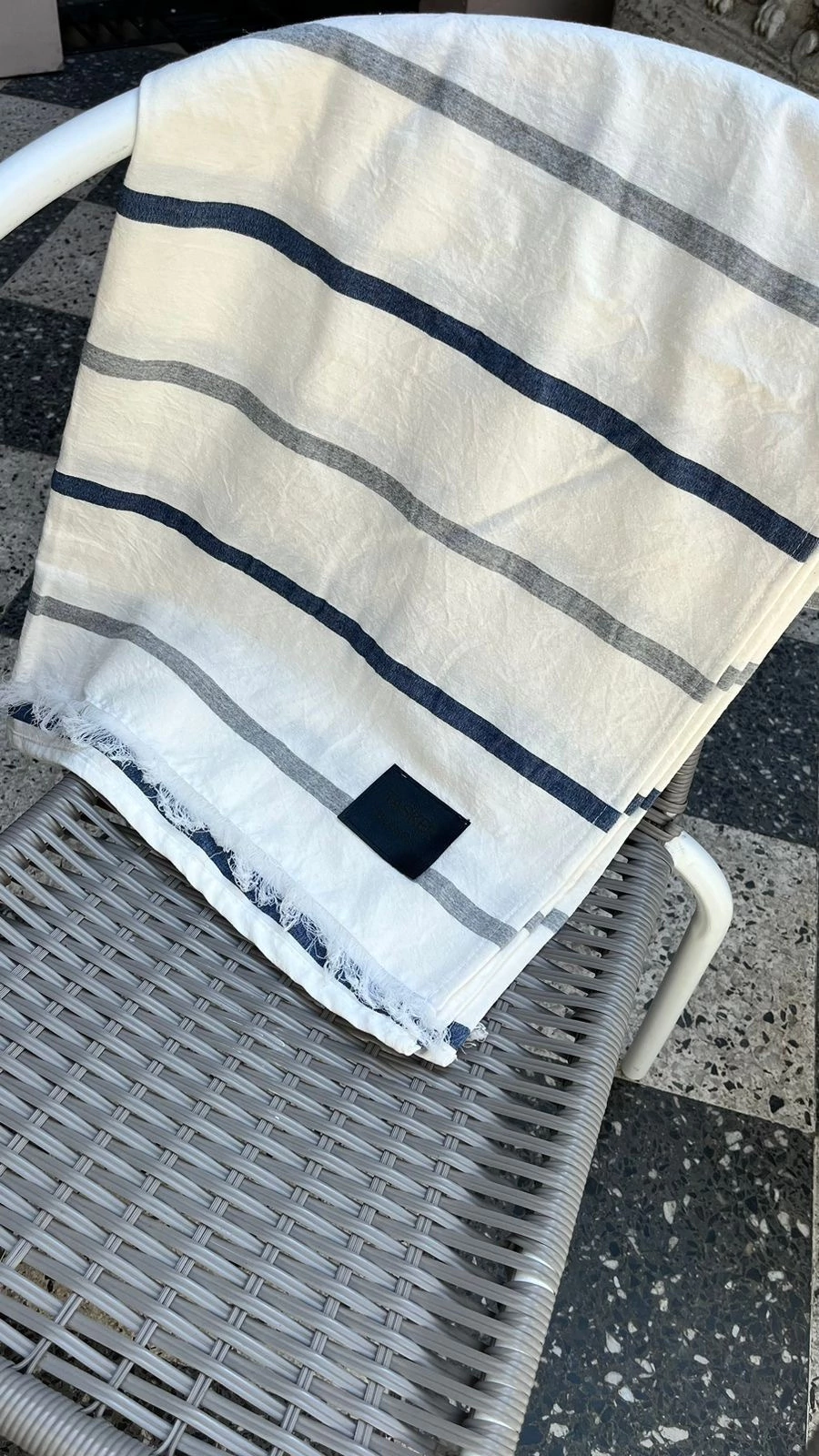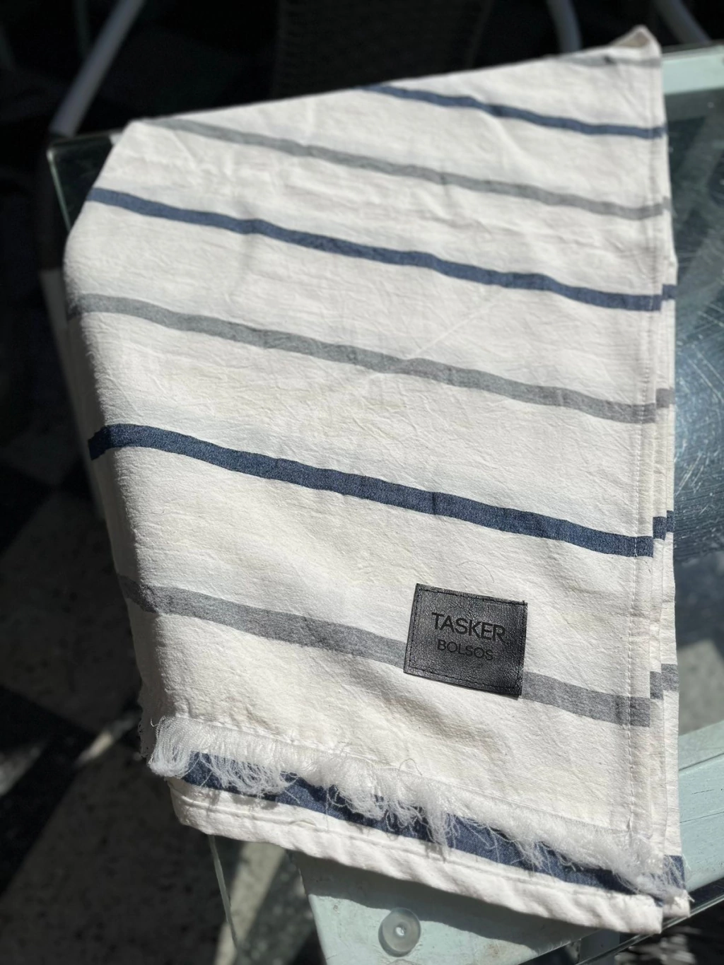 Lona rayada de tusor de 1,70 x 0,90 CM, desflecada en un extremo.
